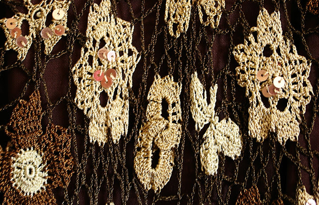 So, here is the deal. I need your help, ladies! Today I was lucky to find this pretty brown crochet dress with sequins. Not really my style, but fashion says you should go through trial and error to find your own style. So, here I go for a try.